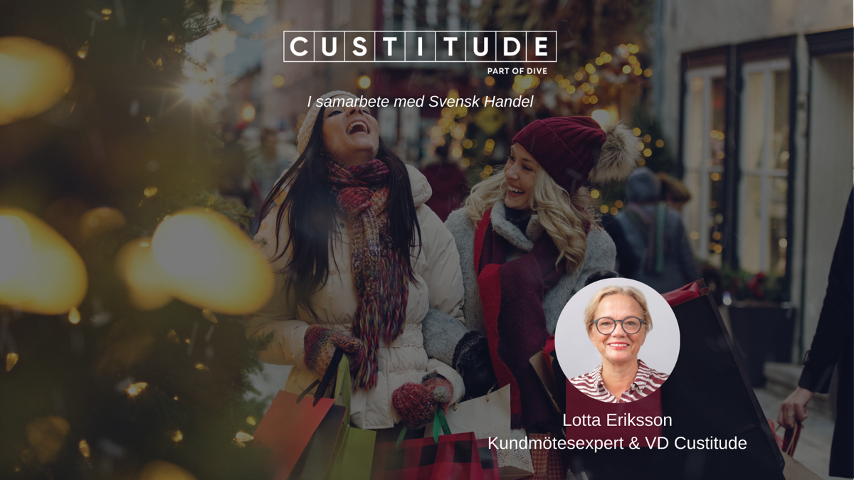I samarbete med Svensk Handel bjuder Custitude in dig till en digital powerkvart där kundmötesexperten, Lotta Eriksson, delar sina främsta tips på hur ni riggar er för att leverera bästa kundmötet även under julrushen.