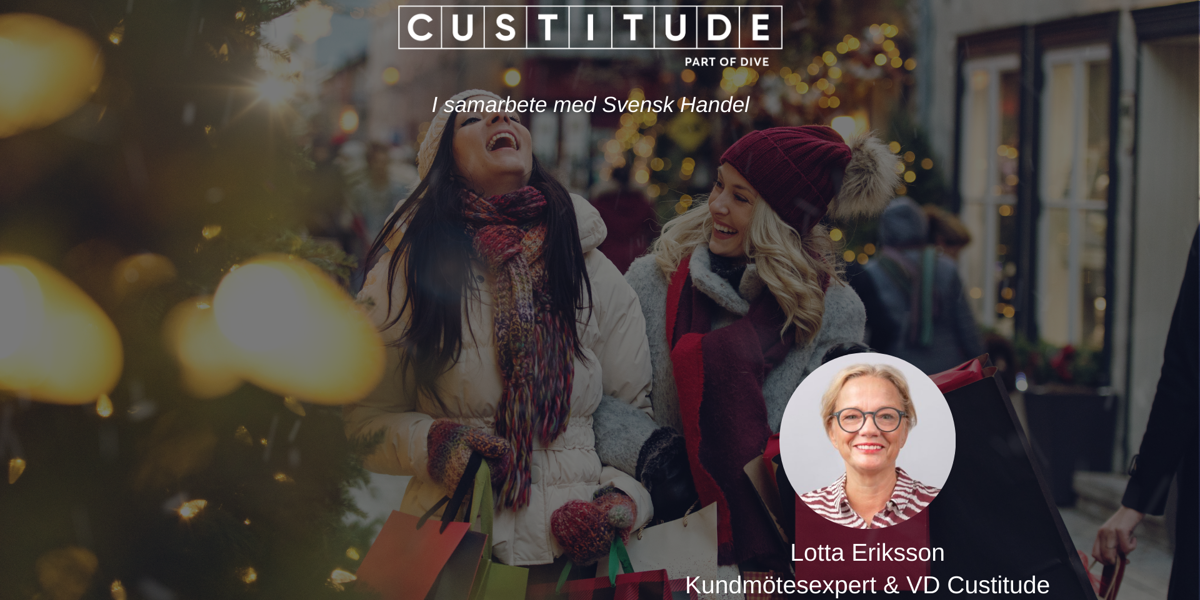 I samarbete med Svensk Handel bjuder Custitude in dig till en digital powerkvart där kundmötesexperten, Lotta Eriksson, delar sina främsta tips på hur ni riggar er för att leverera bästa kundmötet även under julrushen.