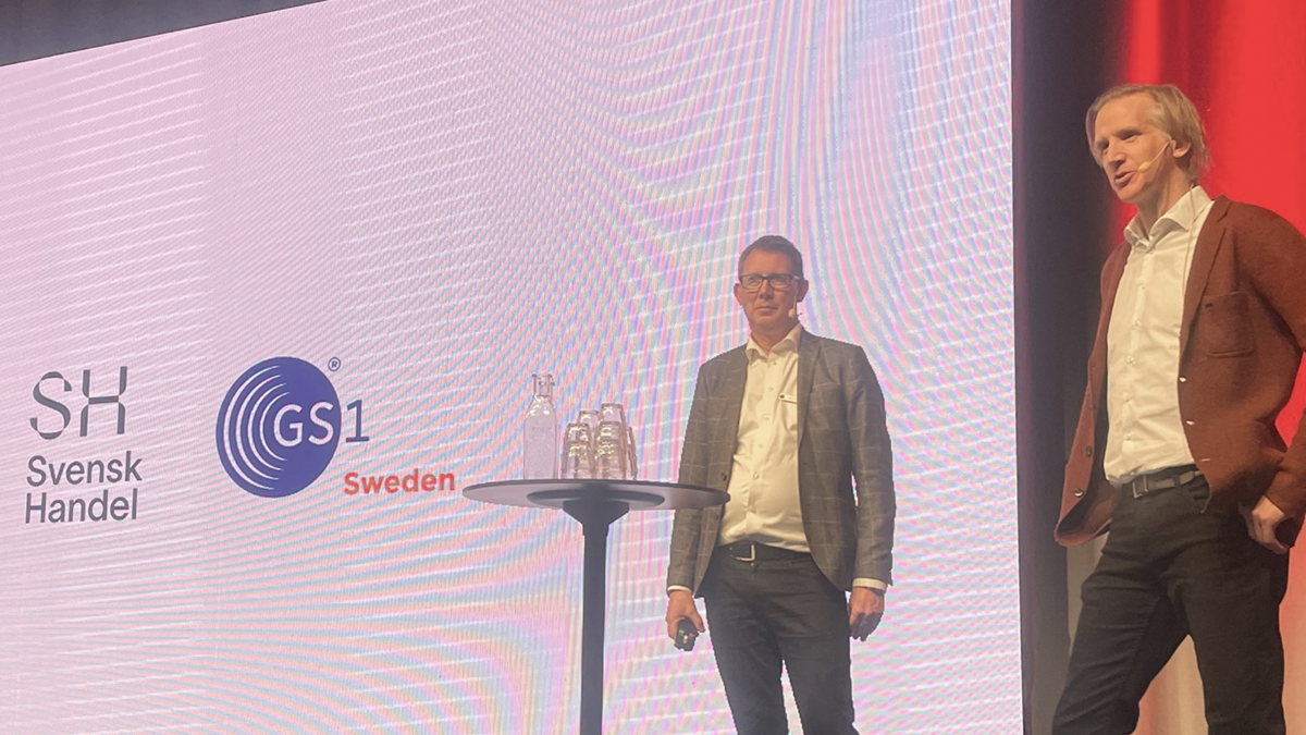 Värdar på scen var Staffan Olsson, Head of Public Affairs på GS1 Sweden samt Magnus Nikkarinen, näringspolitisk expert på Svensk Handel som inledningsvis berättar vad som faktiskt menas med ett digitalt produktpass.