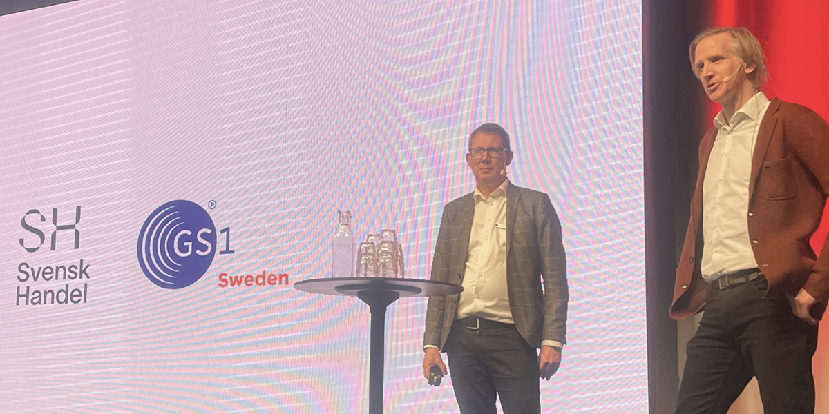 Värdar på scen var Staffan Olsson, Head of Public Affairs på GS1 Sweden samt Magnus Nikkarinen, näringspolitisk expert på Svensk Handel som inledningsvis berättar vad som faktiskt menas med ett digitalt produktpass.