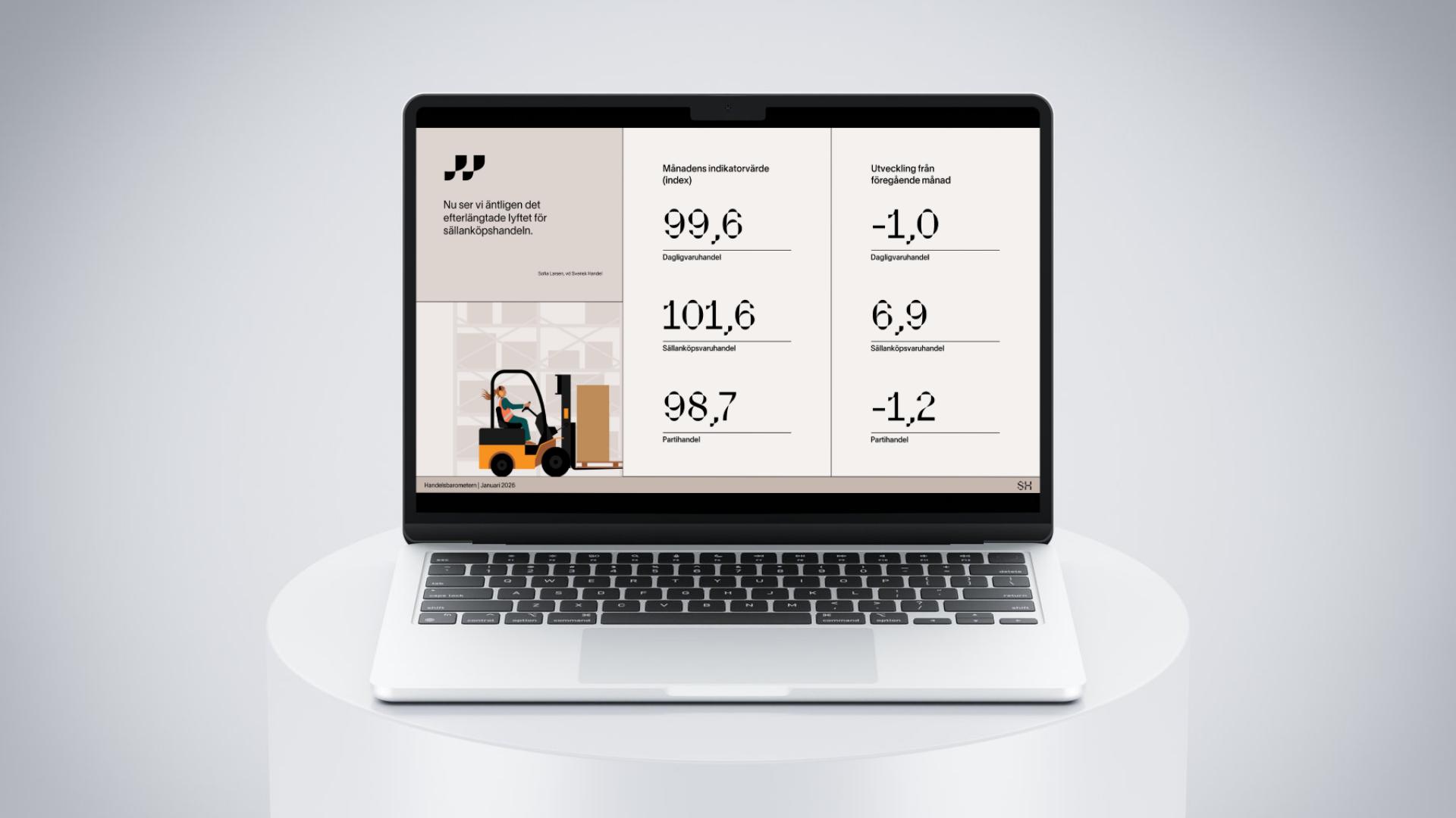 Framtidsindikatorn för sällanköpsvaruhandeln steg med hela 6,9 enheter i januari och landade på 101,6. Uppgången drivs framför allt av en kraftigt förbättrad syn på försäljningen de kommande tre månaderna, men även förväntningarna på lönsamhet och antal anställda stärktes.