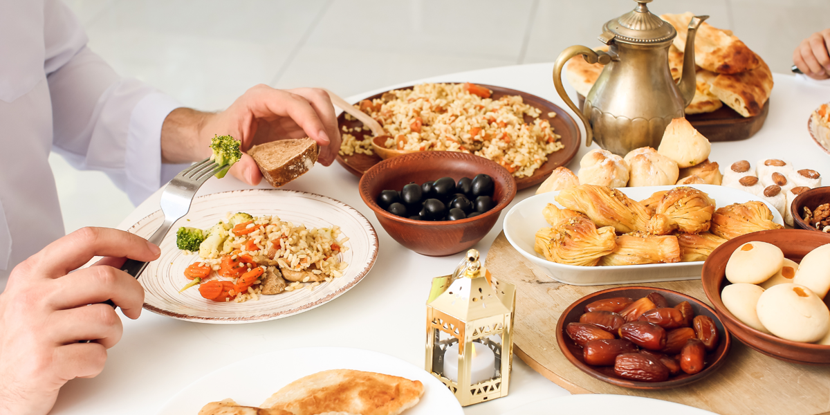 Från soluppgång till solnedgång fastar troende muslimer. På kvällen samlas familjer och vänner för att äta måltiden iftar tillsammans.