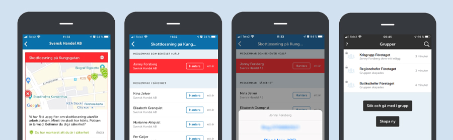 Vid en allvarlig incident eller kris kan administratören för en grupp skicka ut frågor till gruppmedlemmarna direkt i appen för att få veta om de är i säkerhet, i behov av hjälp och så vidare.