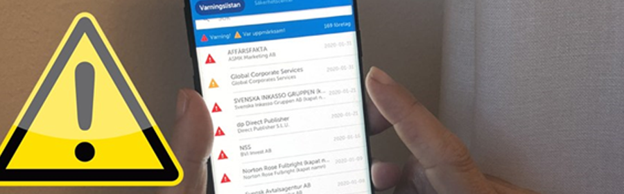 EU Business Register: EU Business Register publicerades på Varningslistan redan 2016. Företaget skickar ut formulär där de vill att man uppdaterar sina uppgifter. Högt upp i fet stil står det (Updating is free of charge). I det finstilta står det att man binder upp sig på en kostnad av 995 Euro per år i 3 år, om man skriver under.