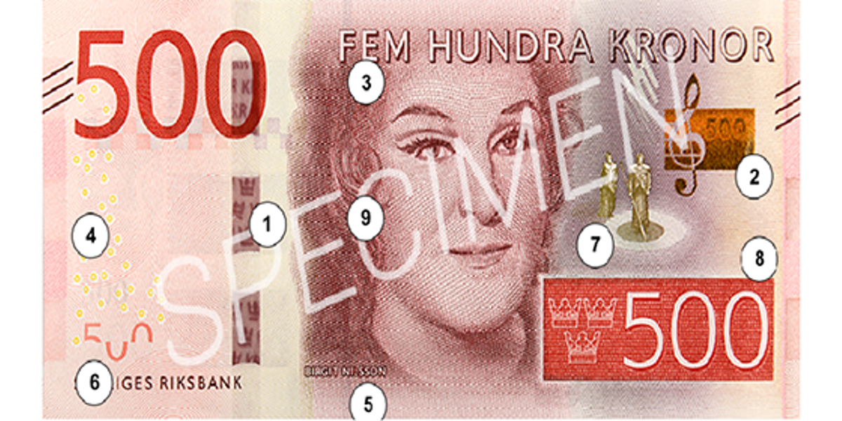 - Var noga med att kontrollera sedlar. När du kontrollerar en sedel bör du granska flera säkerhetsdetaljer i kombination. På www.riksbank.se kan du läsa mer om säkerhetsdetaljerna.