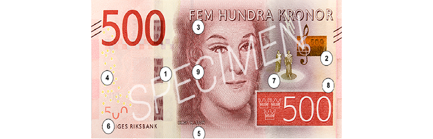 - Var noga med att kontrollera sedlar. När du kontrollerar en sedel bör du granska flera säkerhetsdetaljer i kombination. På www.riksbank.se kan du läsa mer om säkerhetsdetaljerna.