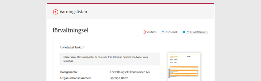 När du söker upp en bluffaktura så får du snabbt en bra överblick av: