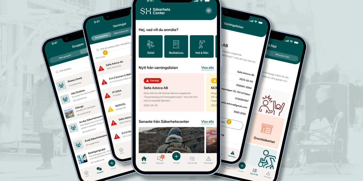 Appen Säkerhetscenter erbjuder mycket mer än snabba anmälningar. Den hjälper också företagare och butiksmedarbetare att få en överblick över tryggheten i sitt område, dela information med andra butiker och få tillgång till tips och råd för att förebygga brott.
