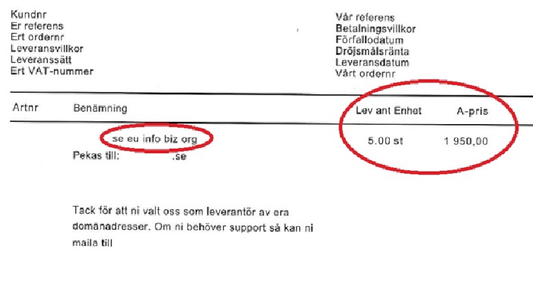 Den senaste veckan har vi fått in en hel del anmälningar från företag som fått mejl från så kallade ”domänskojare”. Vanligtvis brukar dessa ta kontakt via telefon men nu verkar de försöka mejla sitt erbjudande istället. Bedrägeriet består i att du som företagare kontaktas av någon som säger sig arbeta för ett företag som sköter domänregistreringar. Företaget påstår sig ha fått i uppdrag att registrera ett nytt domännamn som är väldigt snarlikt ditt och vill därför ge dig möjlighet att registrera det först. Säljaren är ofta otydlig med att om du tackar ja accepterar du att köpa flera domäner och detta upptäcks oftast först när fakturan kommer. Dessutom tar företaget ofta ut årsavgifter och binder upp dig på 10 år.