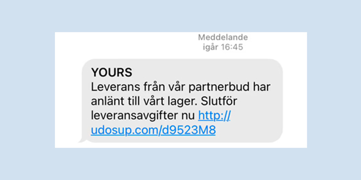 Förutom leveransinformation innehåller sms:en en länk. Enligt Polisen används sedan de stulna kontakterna som måltavlor för nya meddelanden. Viruset skickas vidare till alla dina vänner och plötsligt blir du en länk i att de blir smittade.