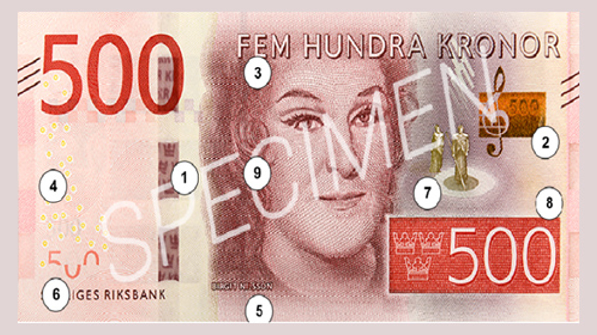 - Var noga med att kontrollera sedlar. När du kontrollerar en sedel bör du granska flera säkerhetsdetaljer i kombination. På www.riksbank.se kan du läsa mer om säkerhetsdetaljerna.