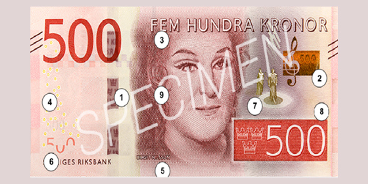 - Var noga med att kontrollera sedlar. När du kontrollerar en sedel bör du granska flera säkerhetsdetaljer i kombination. På www.riksbank.se kan du läsa mer om säkerhetsdetaljerna.