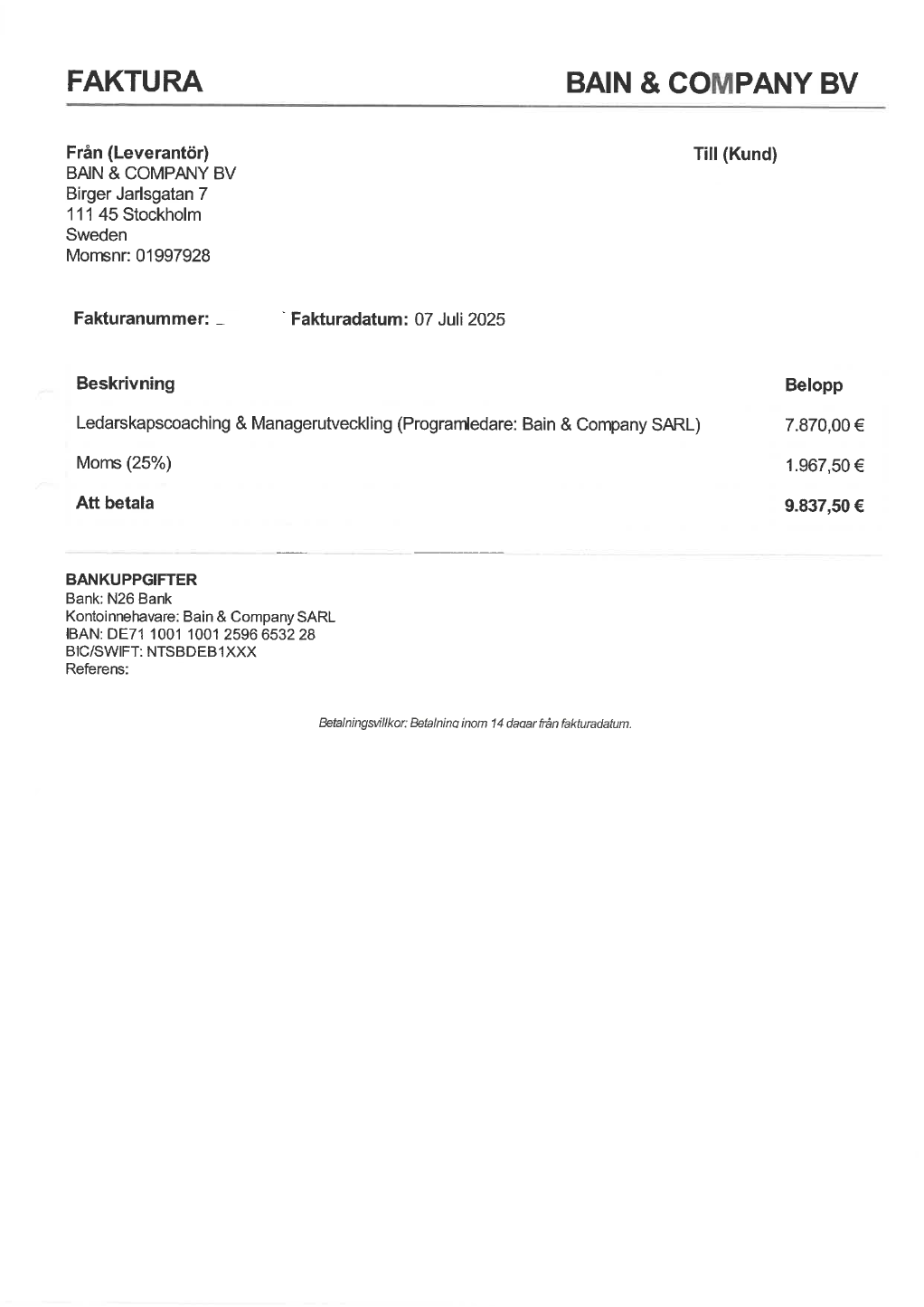BAIN & COMPANY BV (kapat namn)