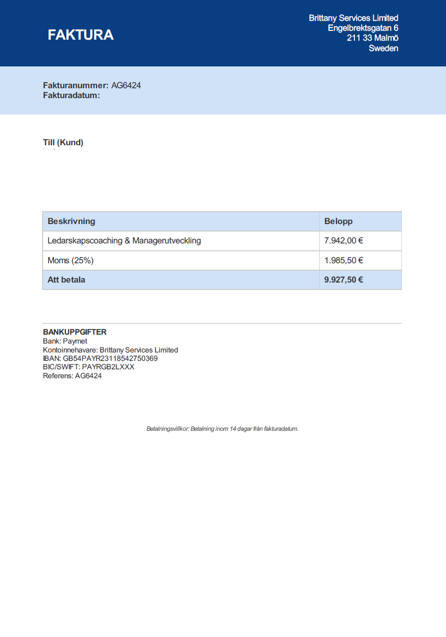 Observera! Dessa uppgifter är hämtade från fakturan och kan medvetet vara felaktiga.