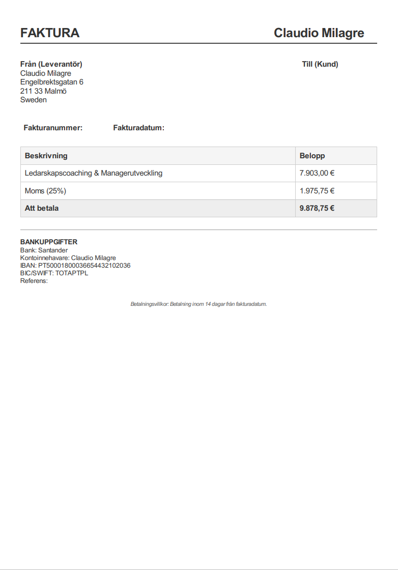 Observera! Dessa uppgifter är hämtade från fakturan och kan medvetet vara felaktiga.