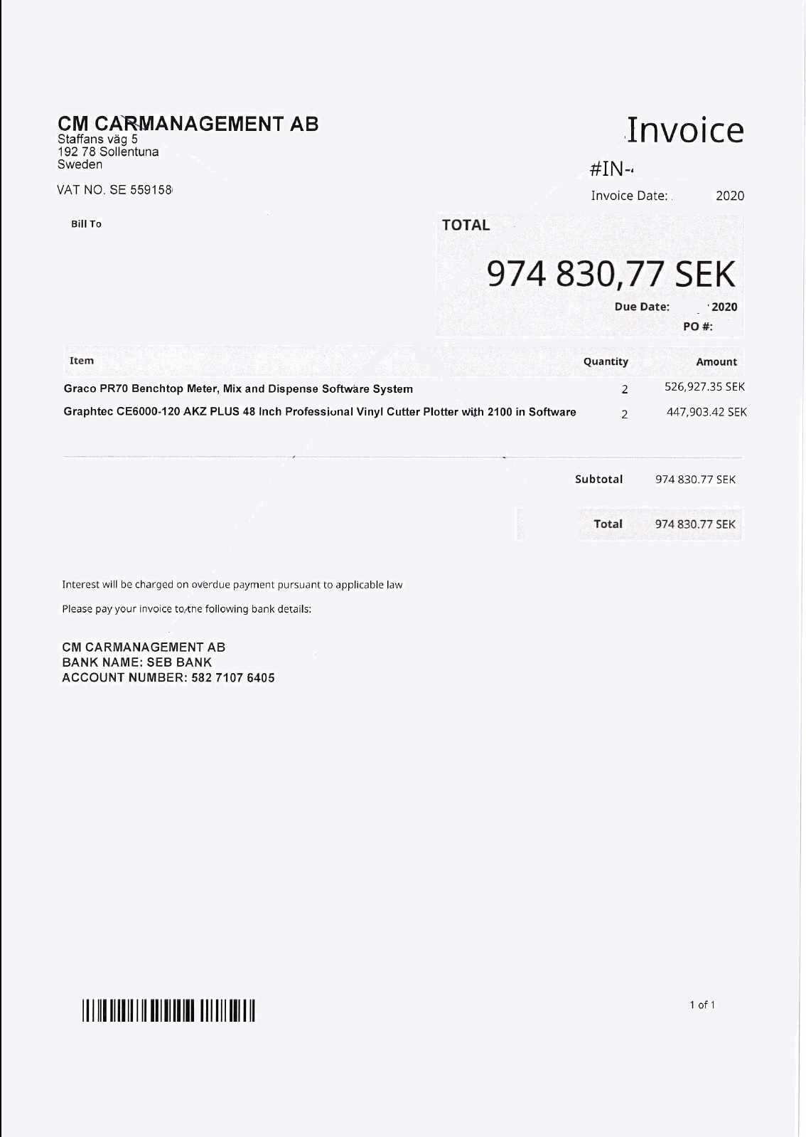 Observera! Dessa uppgifter är hämtade från fakturan och kan medvetet vara felaktiga.