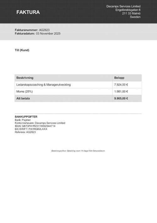 Observera! Dessa uppgifter är hämtade från fakturan och kan medvetet vara felaktiga.