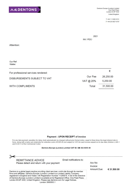 De drabbade företagen kontaktas via mejl av en som säger sig företräda DENTONS. I mejlet hävdar man att det finns en obetald faktura som behöver hanteras skyndsamt. Kort därefter dyker det upp ett mejl som ser ut att komma från det drabbade företagets chef/VD/CEO. I mejlet, som i själva verket också kommer från bedragaren, styrker man fakturans äkthet för att på så sätt övertyga mottagaren om att kravet och fakturan är legitim.