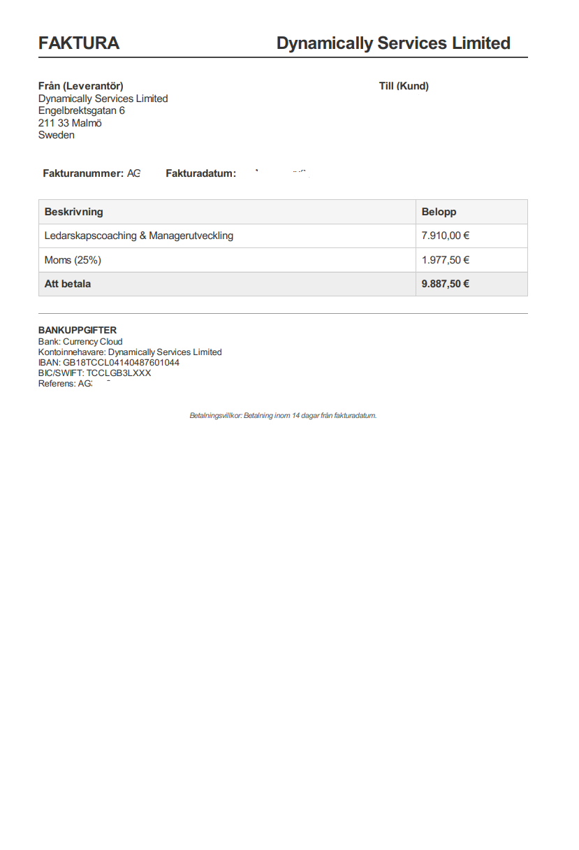 Observera! Dessa uppgifter är hämtade från fakturan och kan medvetet vara felaktiga.