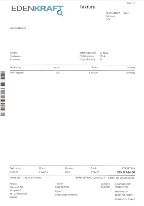 Observera! Dessa uppgifter är hämtade från fakturan och kan medvetet vara felaktiga.
