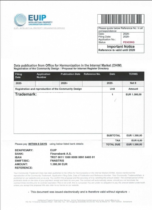 Företaget skickar ut erbjudande som ser ut som en faktura för Patentregistrering i Europa