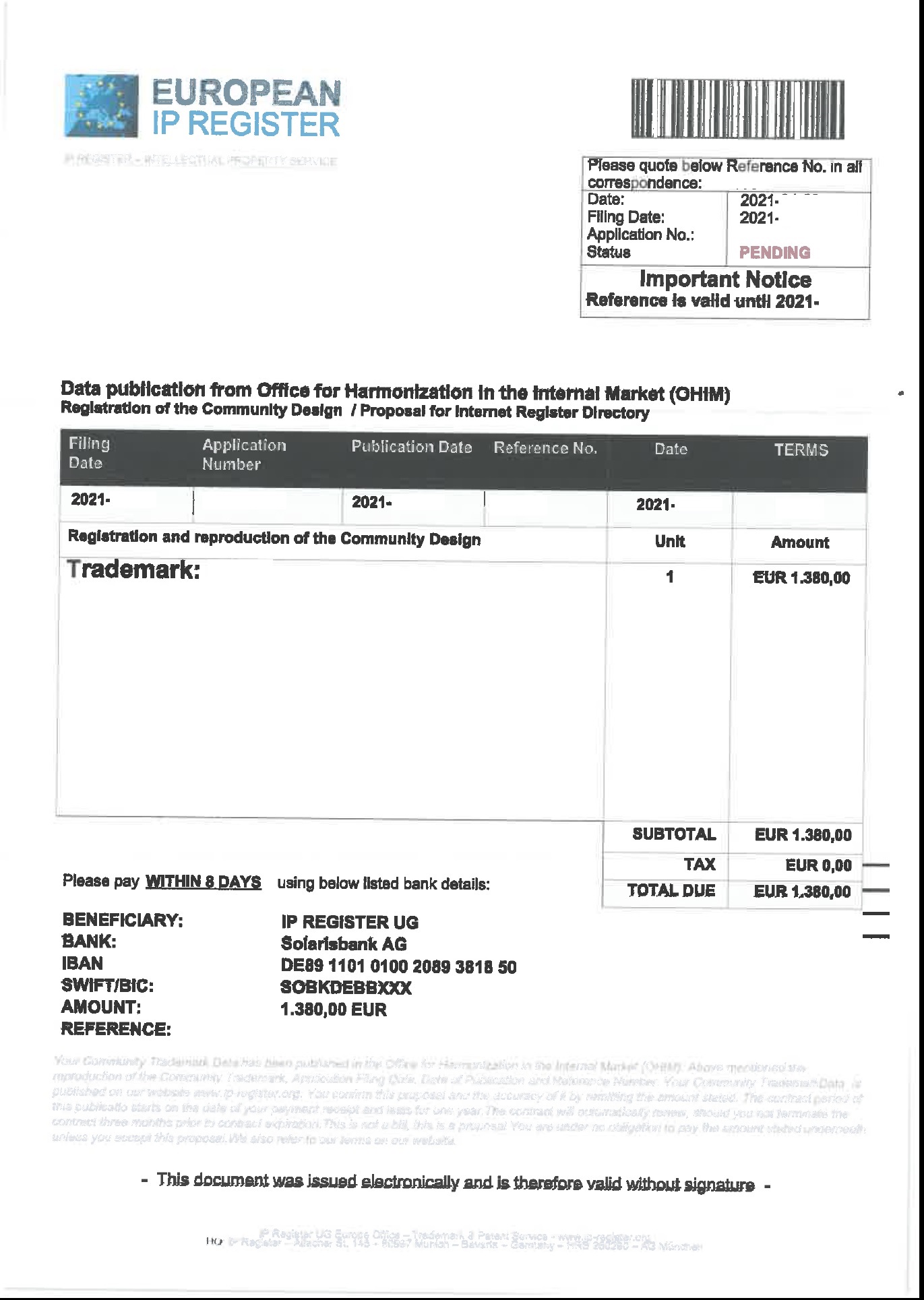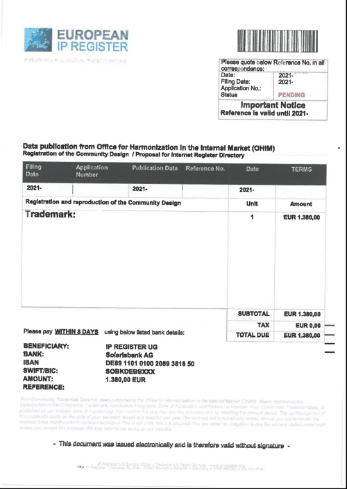 Företaget skickar ut erbjudande som ser ut som en faktura för Patentregistrering i Europa