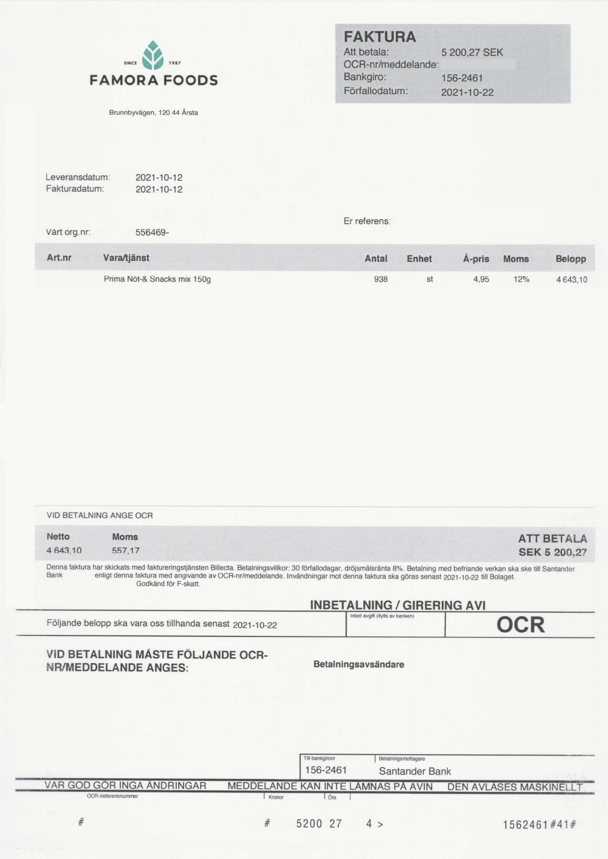 Bedragare skickar ut fakturor i Famora Foods namn och vill att man betalar.Obs! Det är inte Famora Foods som skickar dessa fakturor.