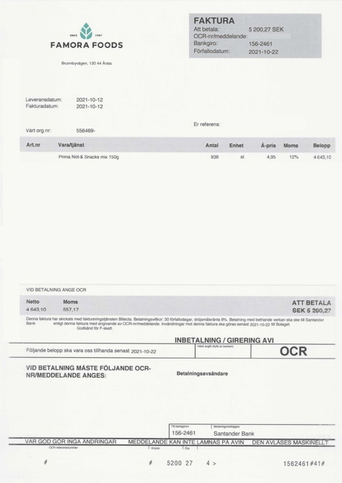 Observera! Dessa uppgifter är hämtade från fakturan och kan medvetet vara felaktiga.