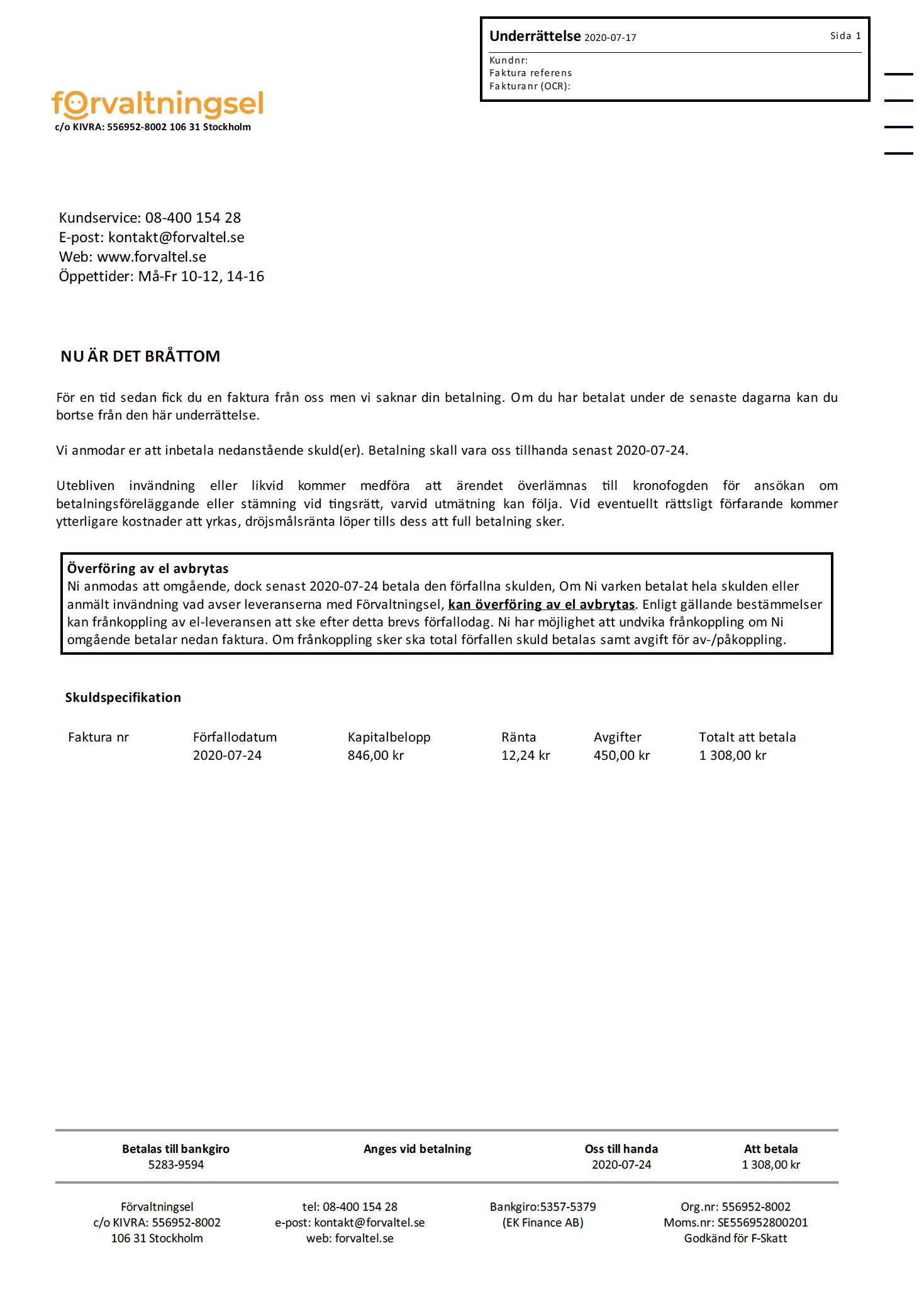 Just nu får vi in många samtal om förvaltningsel, gällande deras meddelande om Kronofogden.Många som har fått detta meddelande har tagit kontakt med Kronofogden för att sedan få till svar att det inte har kommit in något ärende från förvaltningsel.