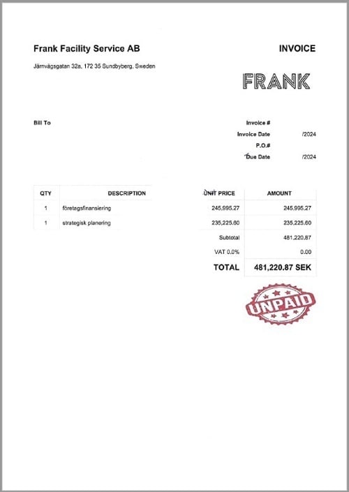 Observera! Dessa uppgifter är hämtade från fakturan och kan medvetet vara felaktiga.