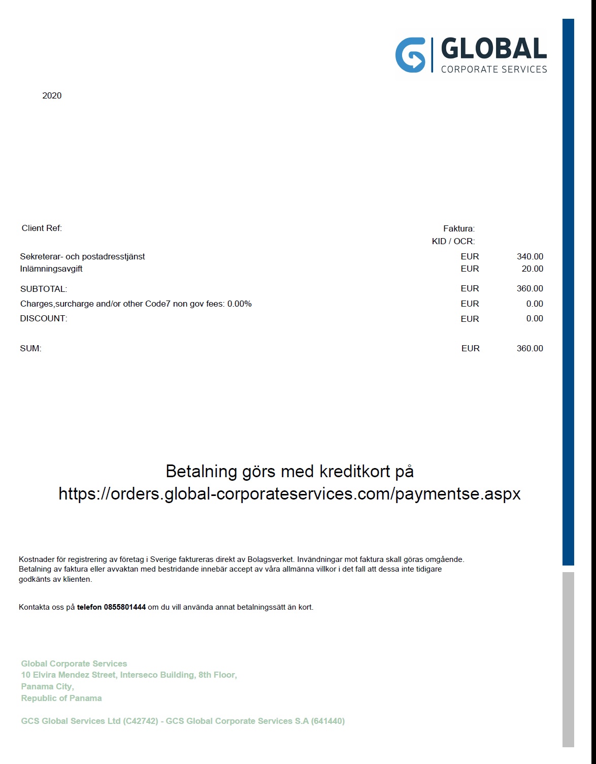 Varningslistan får in klagomål från personer som känner sig lurade av företaget Global Corporate Services (f.d. Panlegis). Många drabbade är blivande företagare som söker info om hur man startar ett företag.