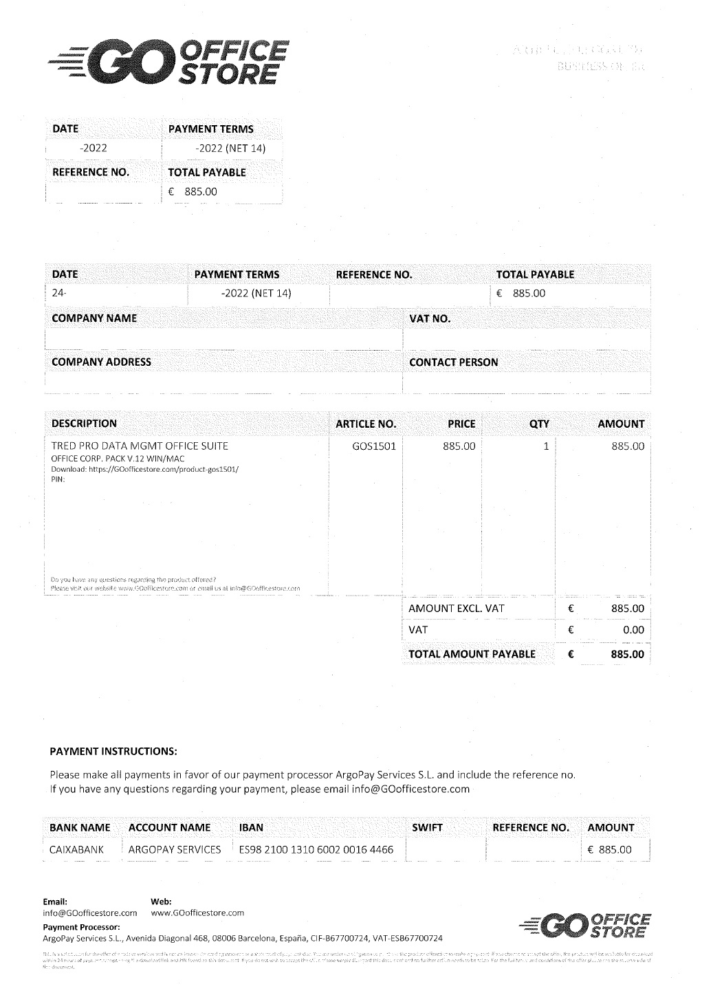 Go Office Store skickar ut erbjudanden som flertalet företagare uppfattar som fakturor. På erbjudandet finns en uppmaning om att betala € 885 inom 14 dagar. I det finstilta står det dock att det endast är ett erbjudande.