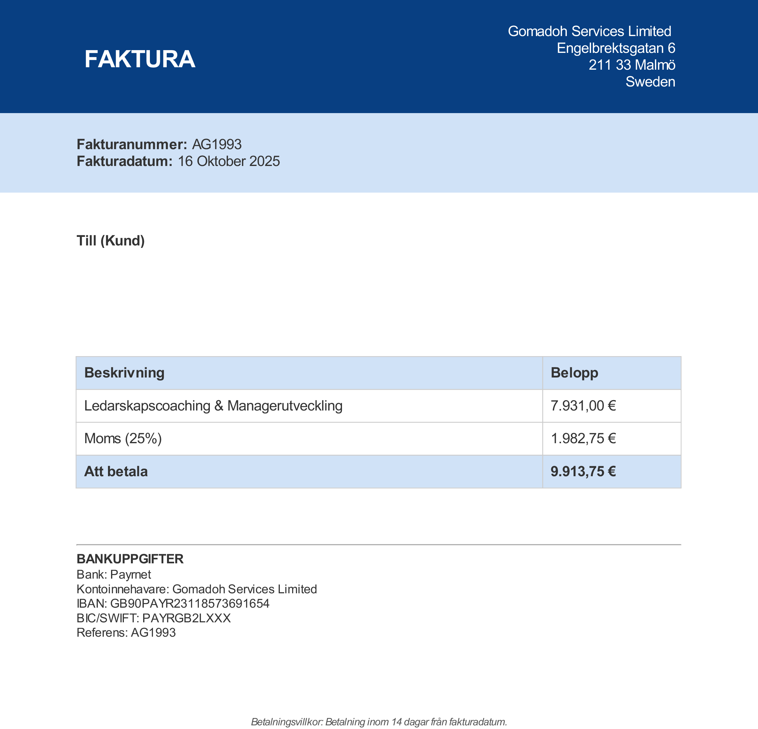 Observera! Dessa uppgifter är hämtade från fakturan och kan medvetet vara felaktiga.