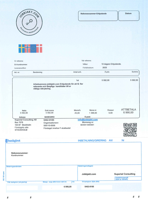 Jobbjakt.com skickar erbjudanden som uppfattas som fakturor till företag och kommuner gällande arbetsannonser. Detta sker trots att annonserna inte har beställts.