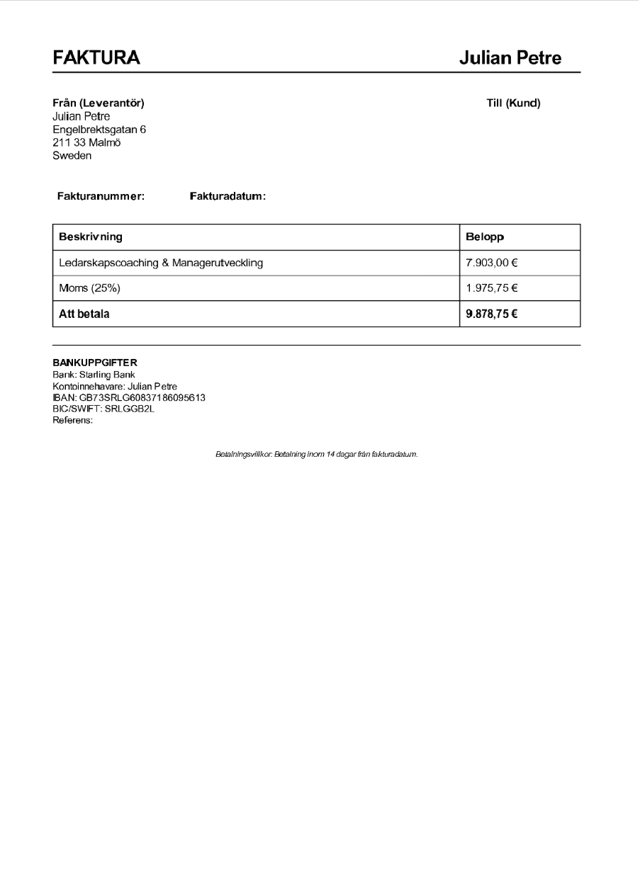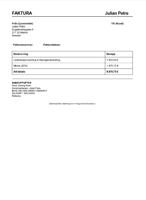 Observera! Dessa uppgifter är hämtade från fakturan och kan medvetet vara felaktiga.
