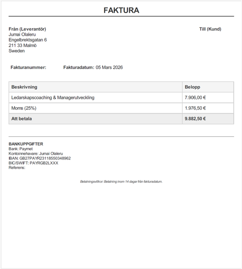 Observera! Dessa uppgifter är hämtade från fakturan och kan medvetet vara felaktiga.