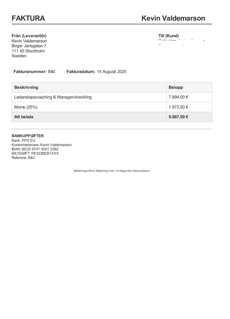 Observera! Dessa uppgifter är hämtade från fakturan och kan medvetet vara felaktiga.