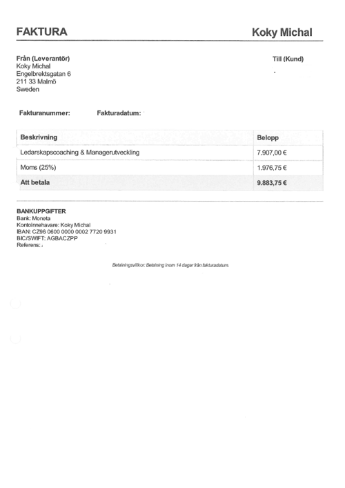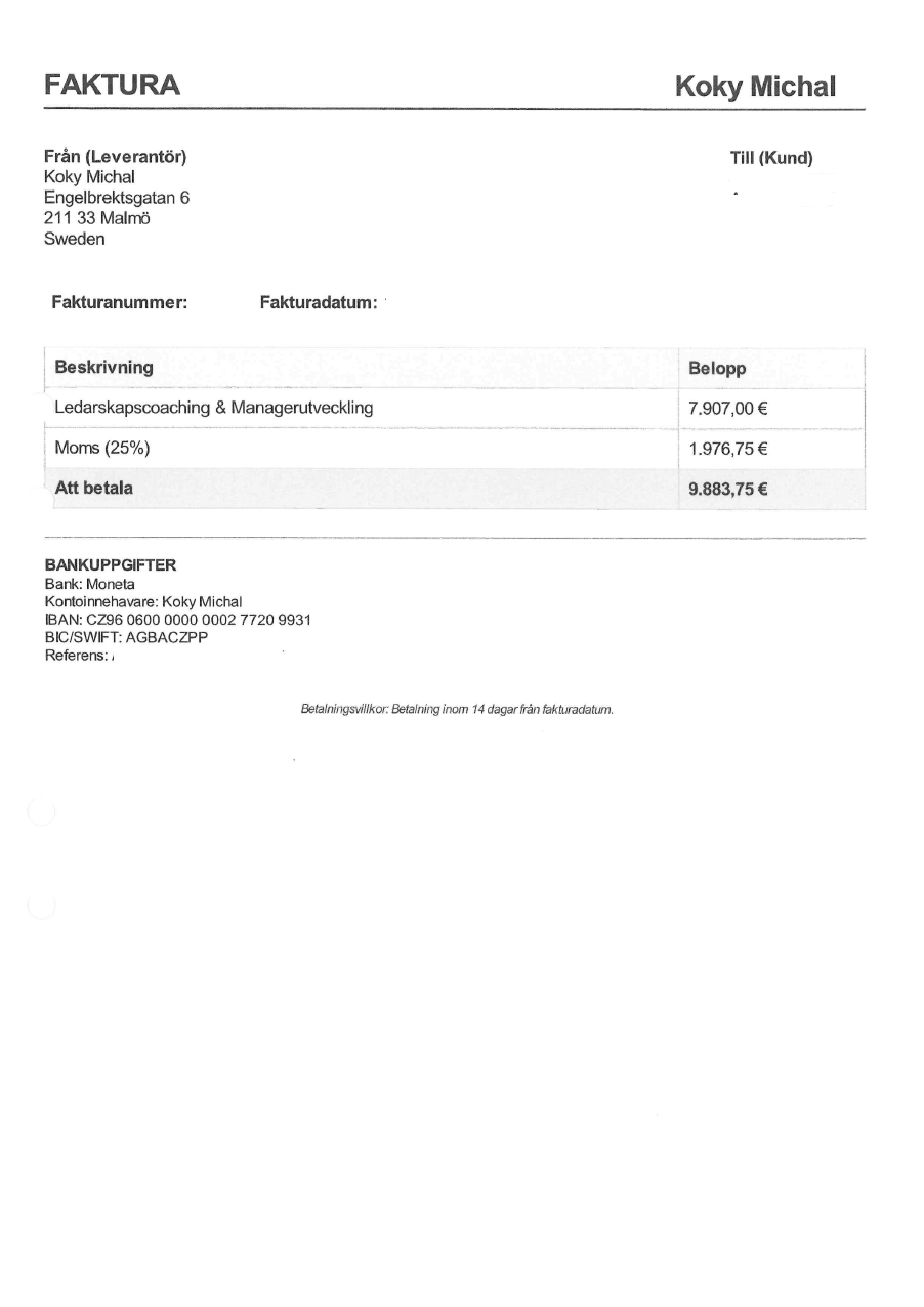 Observera! Dessa uppgifter är hämtade från fakturan och kan medvetet vara felaktiga.