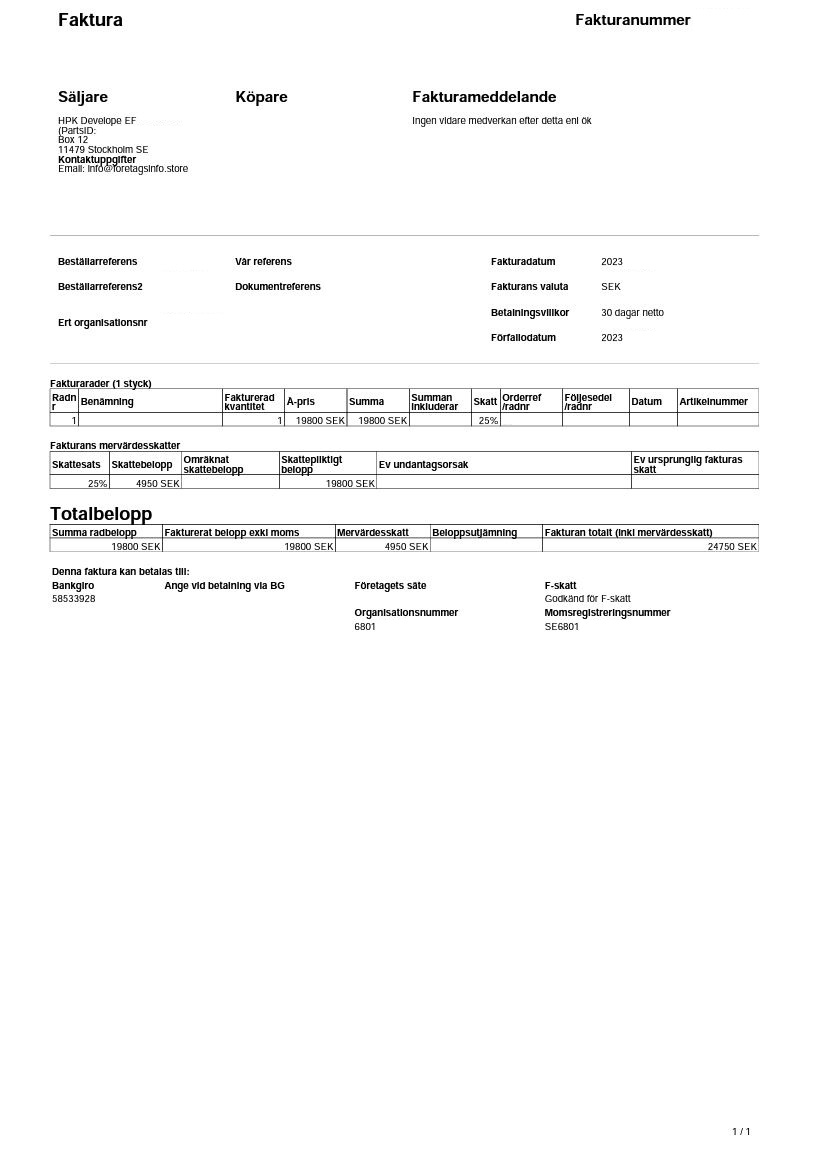 Observera! Dessa uppgifter är hämtade från fakturan och kan medvetet vara felaktiga.