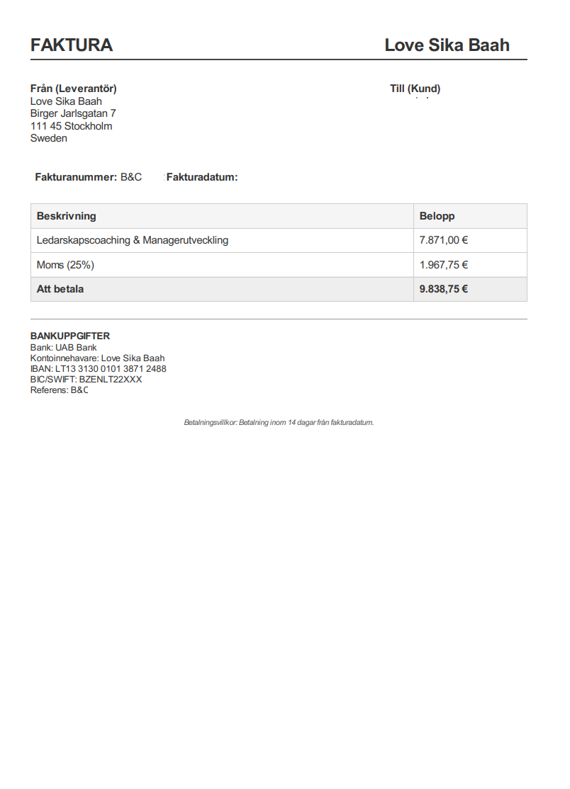 Observera! Dessa uppgifter är hämtade från fakturan och kan medvetet vara felaktiga.