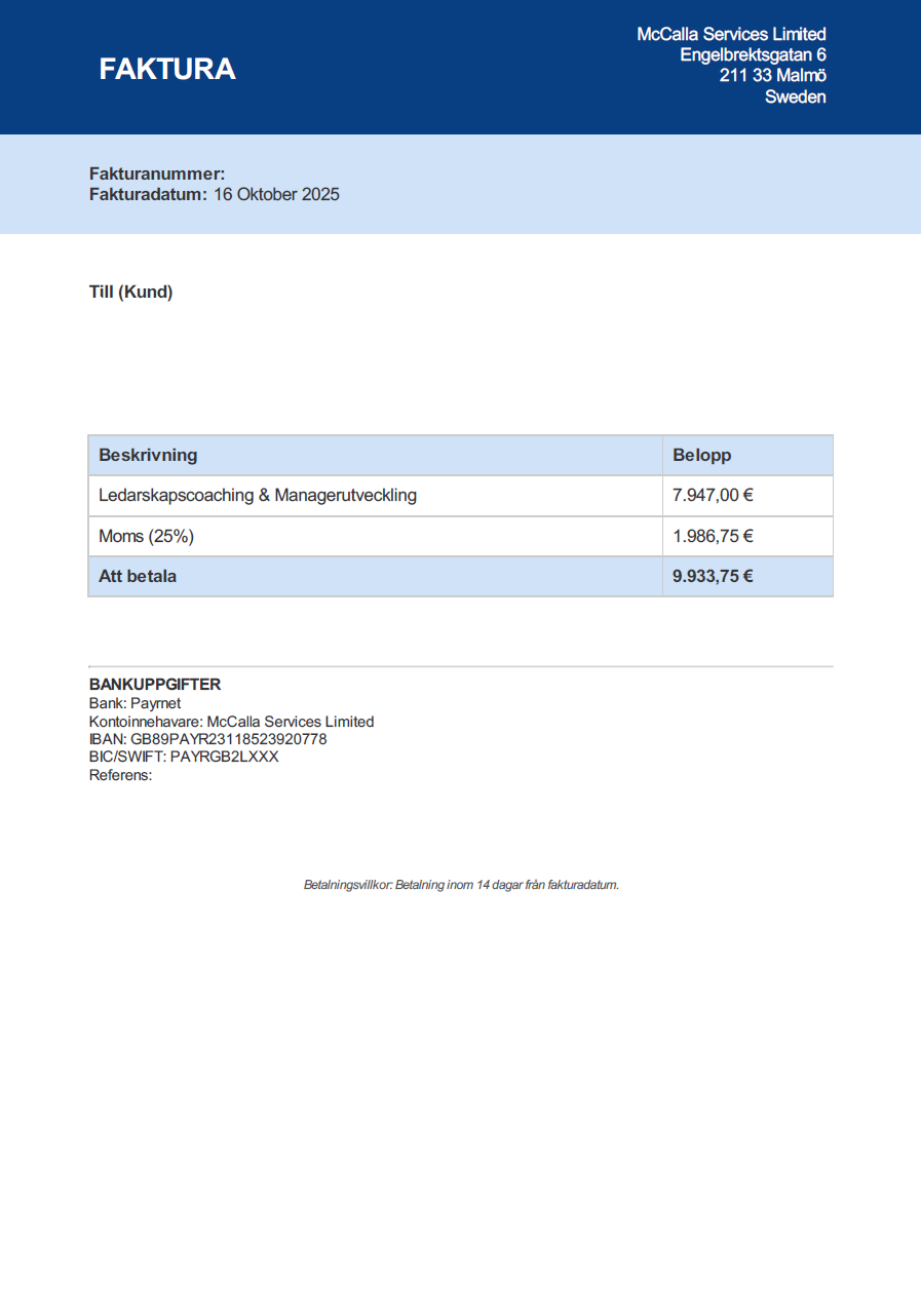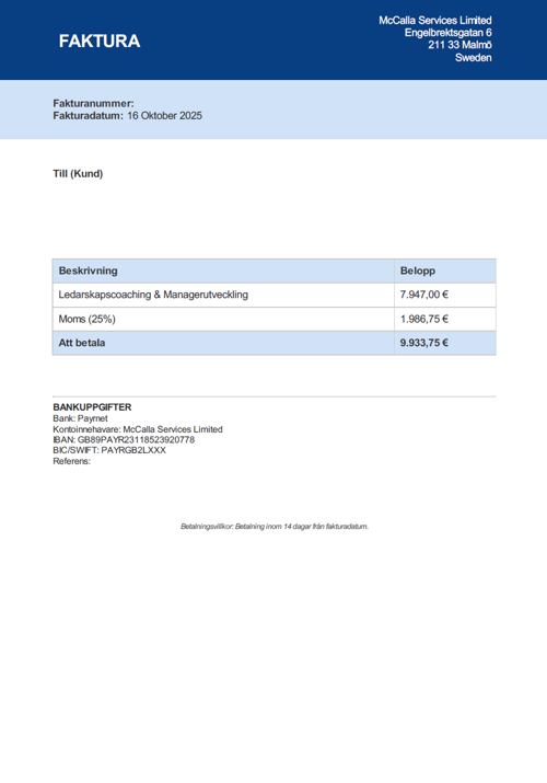 Observera! Dessa uppgifter är hämtade från fakturan och kan medvetet vara felaktiga.