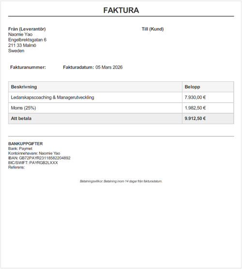 Observera! Dessa uppgifter är hämtade från fakturan och kan medvetet vara felaktiga.