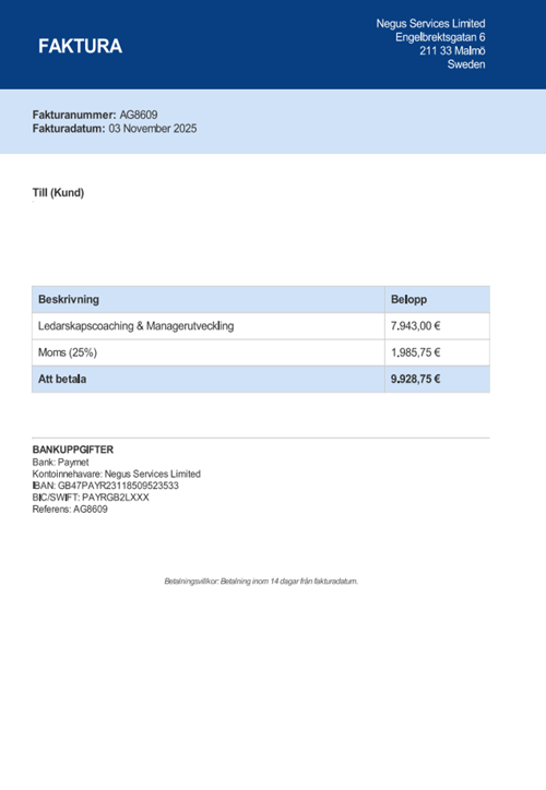 Observera! Dessa uppgifter är hämtade från fakturan och kan medvetet vara felaktiga.