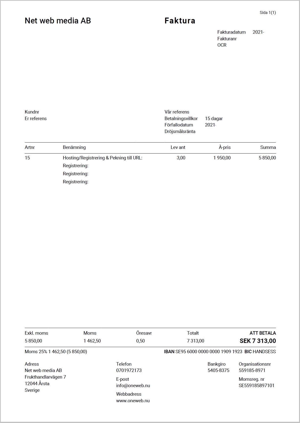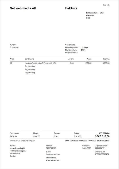 Observera! Dessa uppgifter är hämtade från fakturan och kan medvetet vara felaktiga.