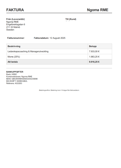 Observera! Dessa uppgifter är hämtade från fakturan och kan medvetet vara felaktiga.