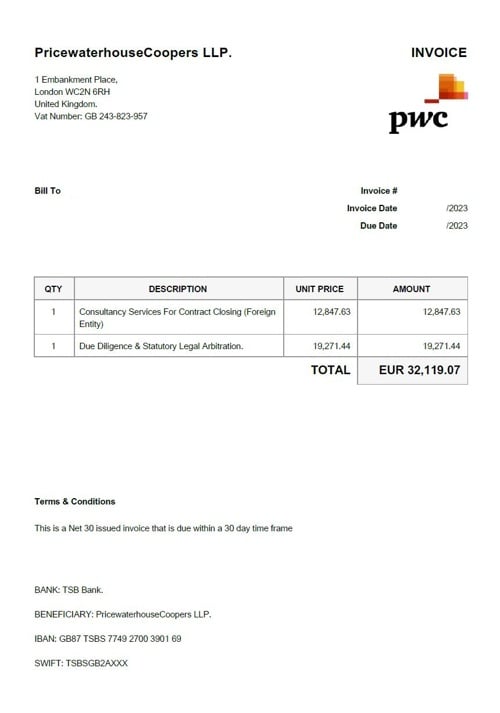PricewaterhouseCoopers LLP. (KAPAT NAMN)