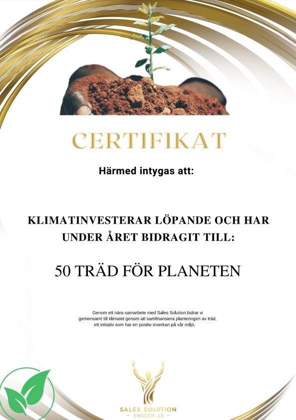 Sales Solution Sweden AB ringer upp företagare och påstår sig representera deras befintliga elleverantör. Företagaren får intrycket att de erbjuds en kostnadsfri tjänst för miljöcertifiering eller klimatkompensation. Under samtalet ombeds företagaren att klicka på en länk som skickas till mobiltelefonen och sägs vara en del av processen. I verkligheten innebär klicket att ett avtal signeras, utan att detta framgår. Några dagar senare får företagaren en faktura, tillsammans med ett certifikat för trädplantering, trots att varken kostnader eller tjänstens natur nämnts under samtalet.