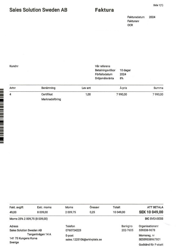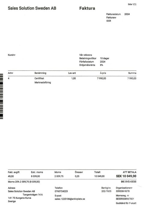 Observera! Dessa uppgifter är hämtade från fakturan och kan medvetet vara felaktiga.