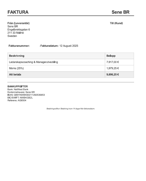 Observera! Dessa uppgifter är hämtade från fakturan och kan medvetet vara felaktiga.