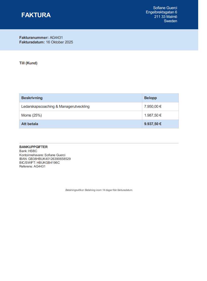 Observera! Dessa uppgifter är hämtade från fakturan och kan medvetet vara felaktiga.